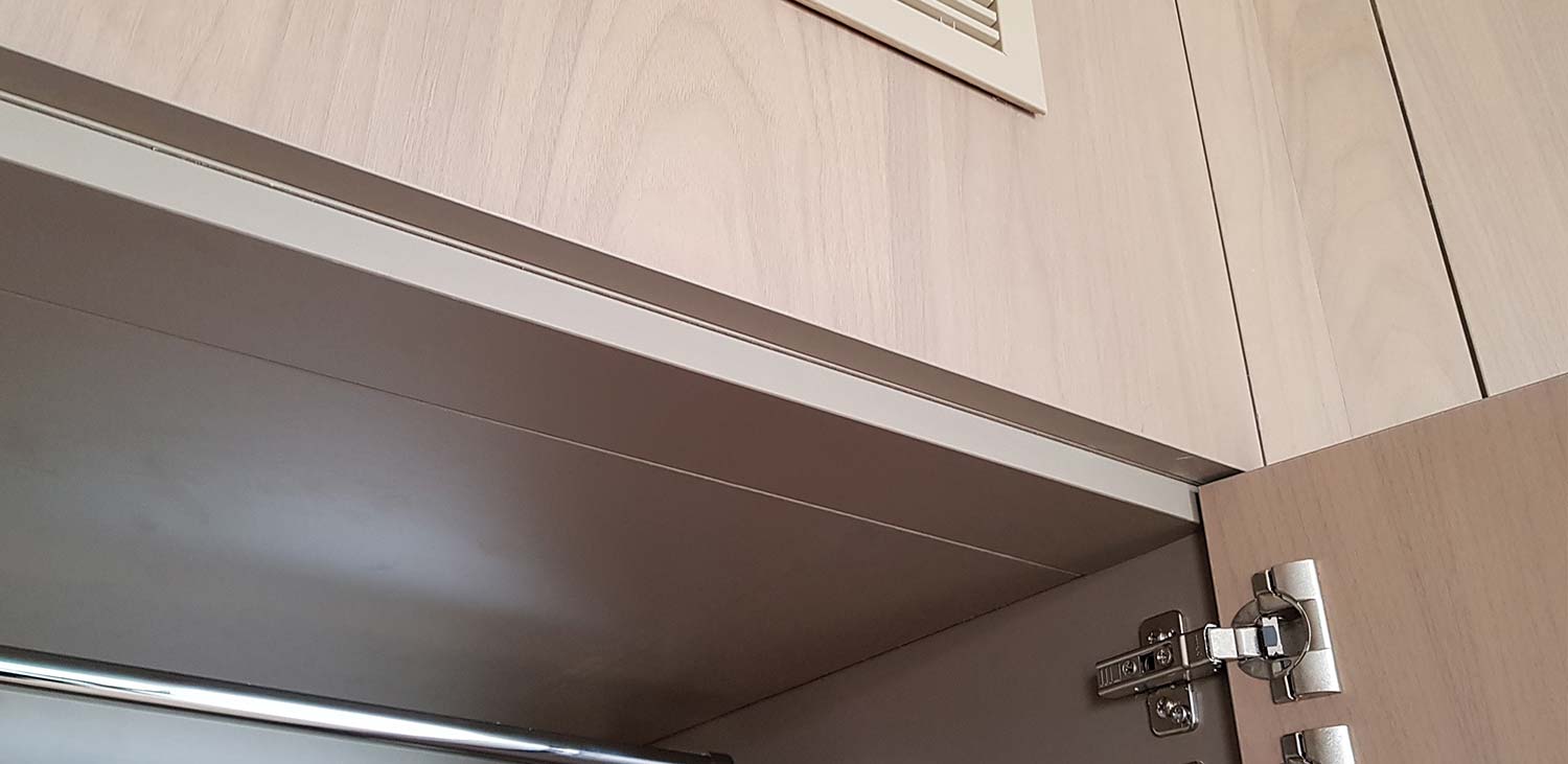 Création d’une série de placards sur-mesure, en stratifié Oberflex, intérieurs en mélaminé uni.